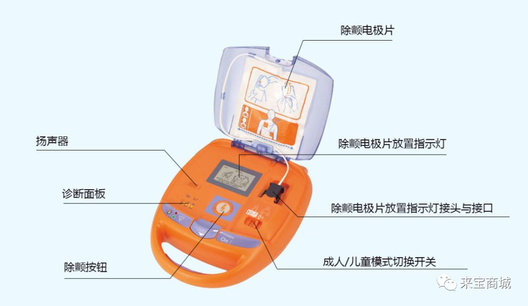 每个品牌都有醒目的开机键和除颤键,有盖子的机器大多都是开盖即开机